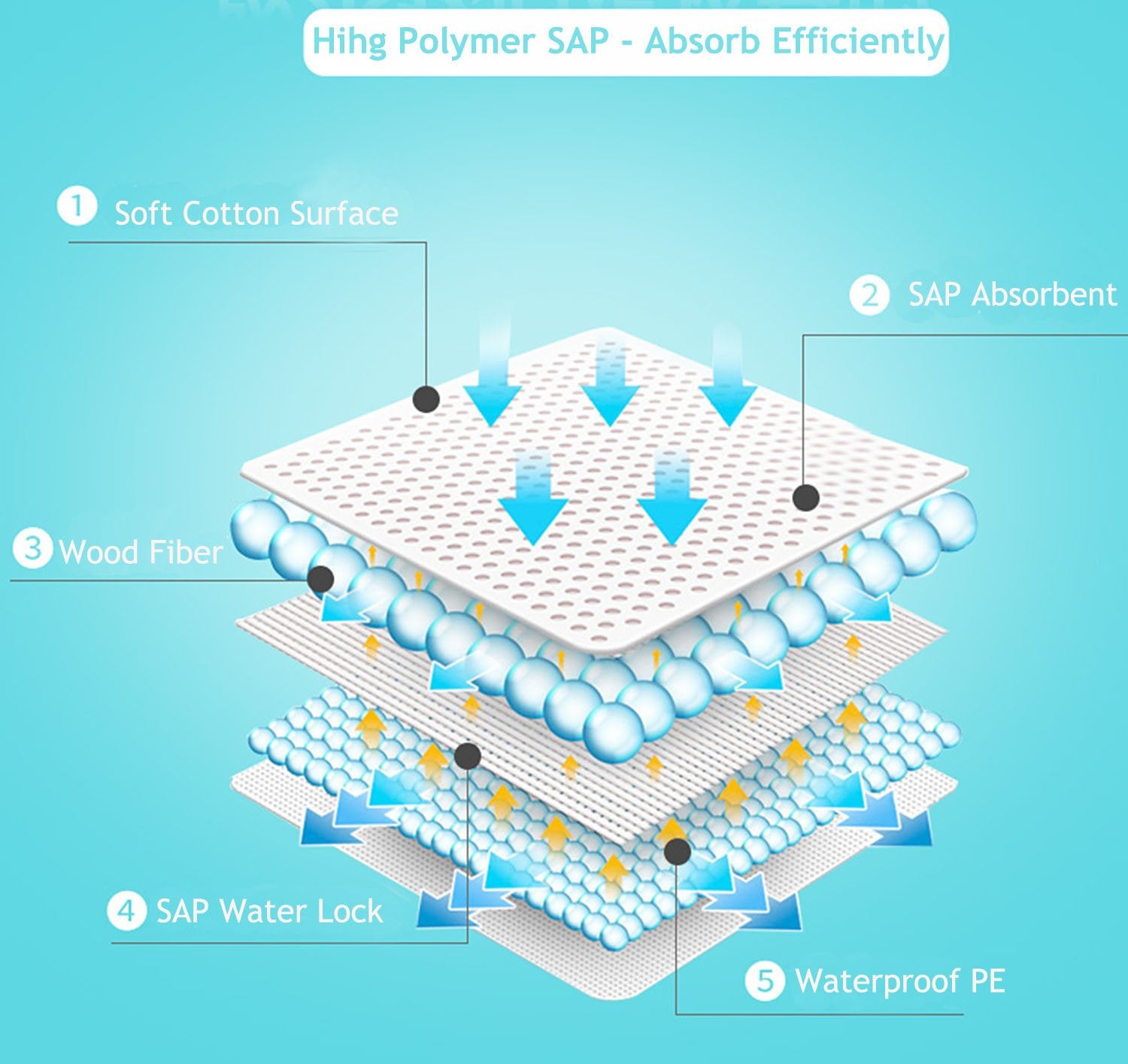 - * Under pads with polymer SPA offer extra absorbency and protection, Highly absorbent, soft fluff fill with SAP