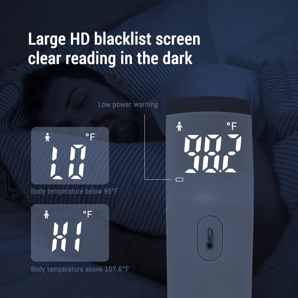 - Multifunctional: The temporal thermometer is designed for all ages, adults, babies, and elders. In addition to measuring the forehead, it can also measure the room, object, and liquids temperature. A great choice for families, nurseries, hotels, school
