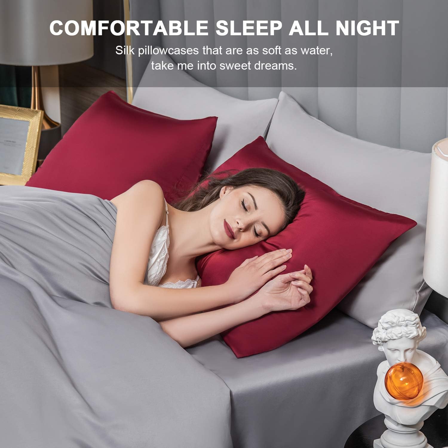 Mulberry Silk Pillowcase for Hair and Skin,Queen Size Cooling Silk Pillow Case with Hidden Zipper,Allergen Proof Dual Sides Soft Breathable Smooth Silk Pillow Cover for Women(Queen,Dark Red)