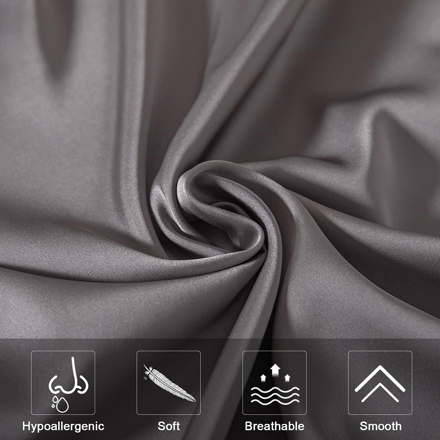 Mulberry Silk Pillowcase for Hair and Skin,Queen Size Cooling Silk Pillow Case with Hidden Zipper,Allergen Proof Dual Sides Soft Breathable Smooth Silk Pillow Cover for Women(Queen,Dark Gray)