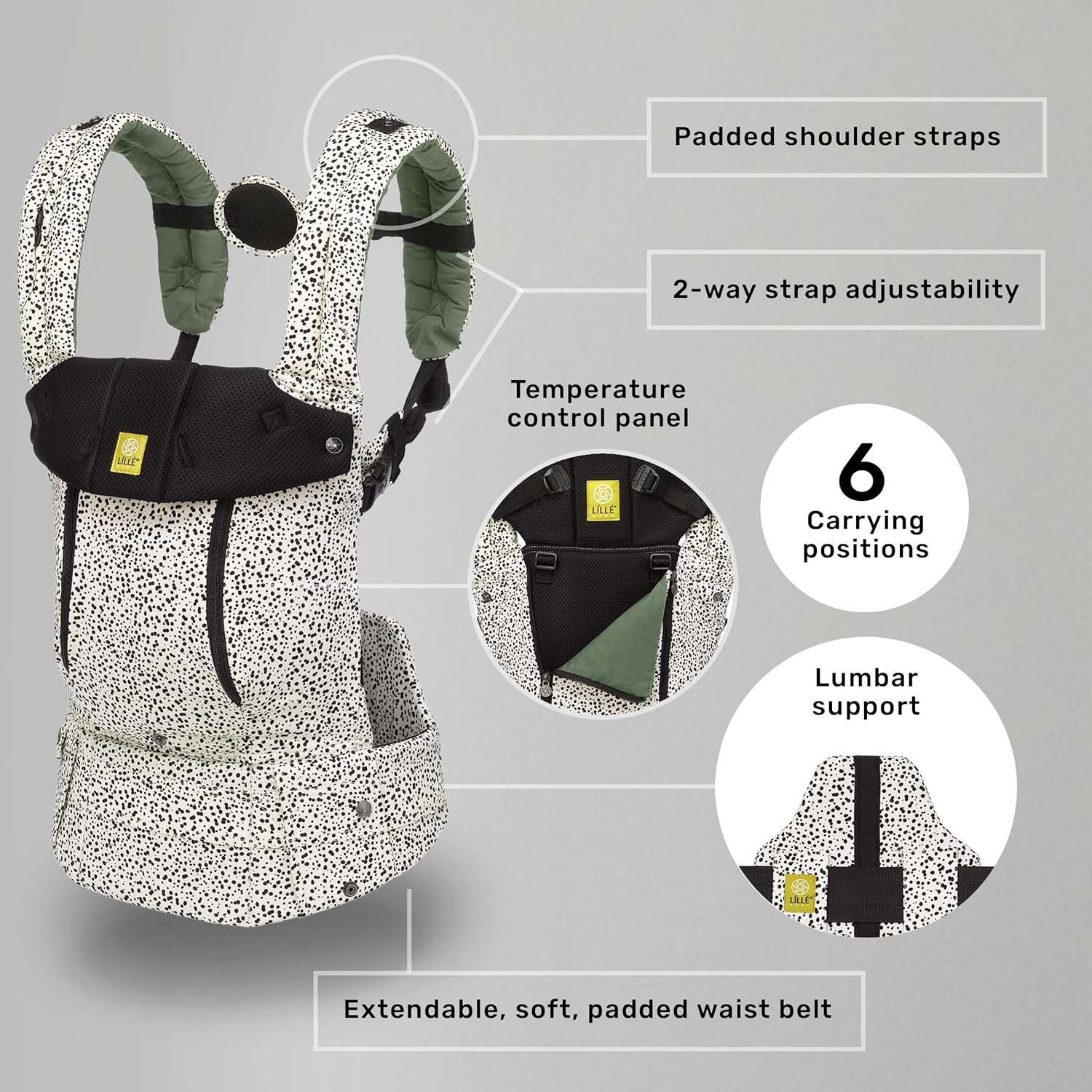 - Six Positions: The LÍLLÉbaby Complete baby carrier features 6 ergonomic carry styles for 360-degree babywearing including front, backpack and hip styles.