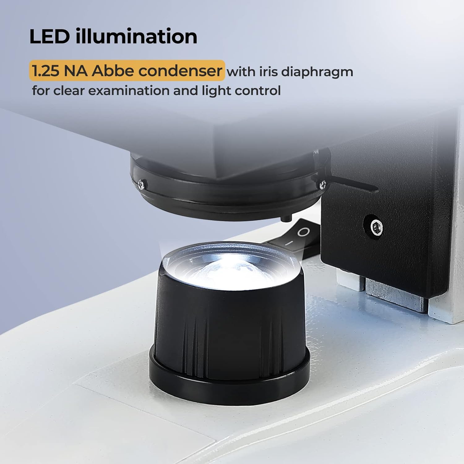 - [Mechanical Stage]: With 1.0mm stage divisions, locks slide into place and provides precise slide manipulation along the X- and Y-axis to allow coordinates to be recorded, enabling the viewer to return to a specific location on the slide.