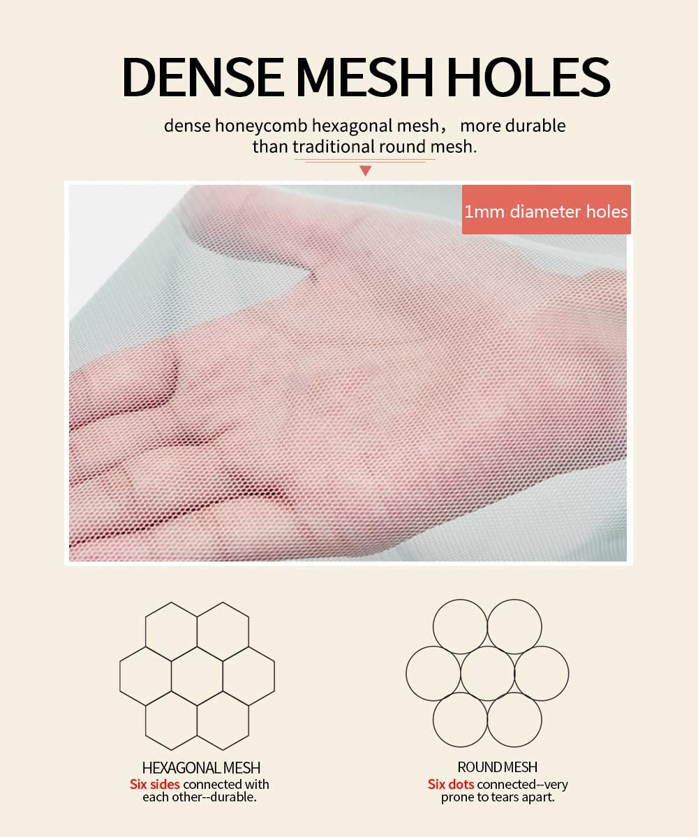 - ✔ Dense Mesh Holes: This bug net for stroller with 1mm diameter honeycomb hexagonal mesh, more durable than traditional round mesh.Perfectly against tiny mosquito with Ventilated and breathable.