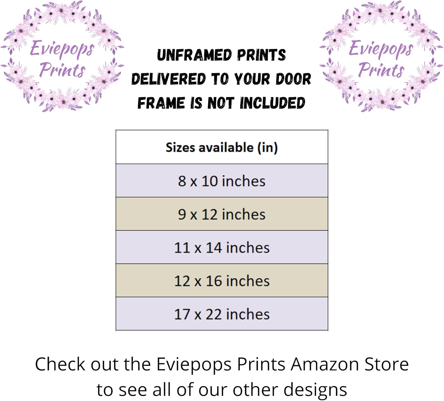 - AMAZON STORE – check out the Eviepops Prints Amazon Store to see our other designs.