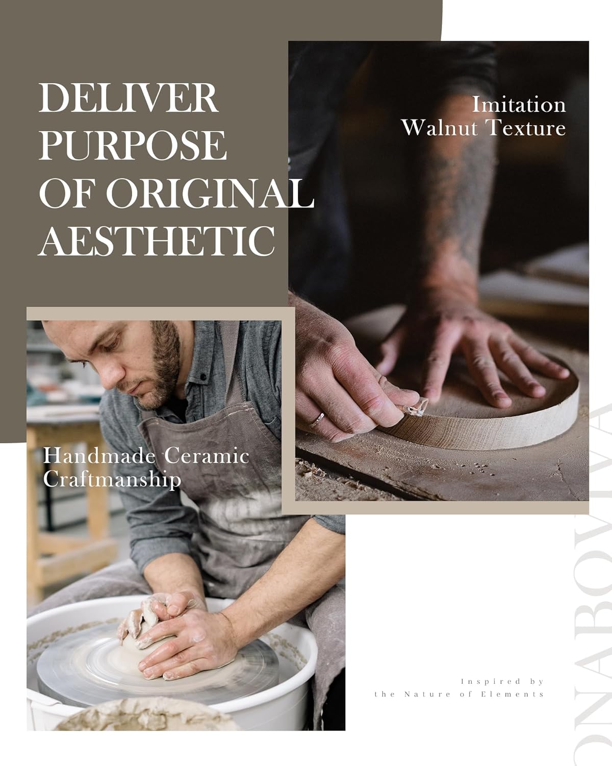 - 【Inspired by the Mermaid】- Onaboviva essential oil diffusers draw inspiration from mermaid,made of handmade Ceramic Cover, pair with Imitation Walnut Texture Base,perfectly matches any decorative style