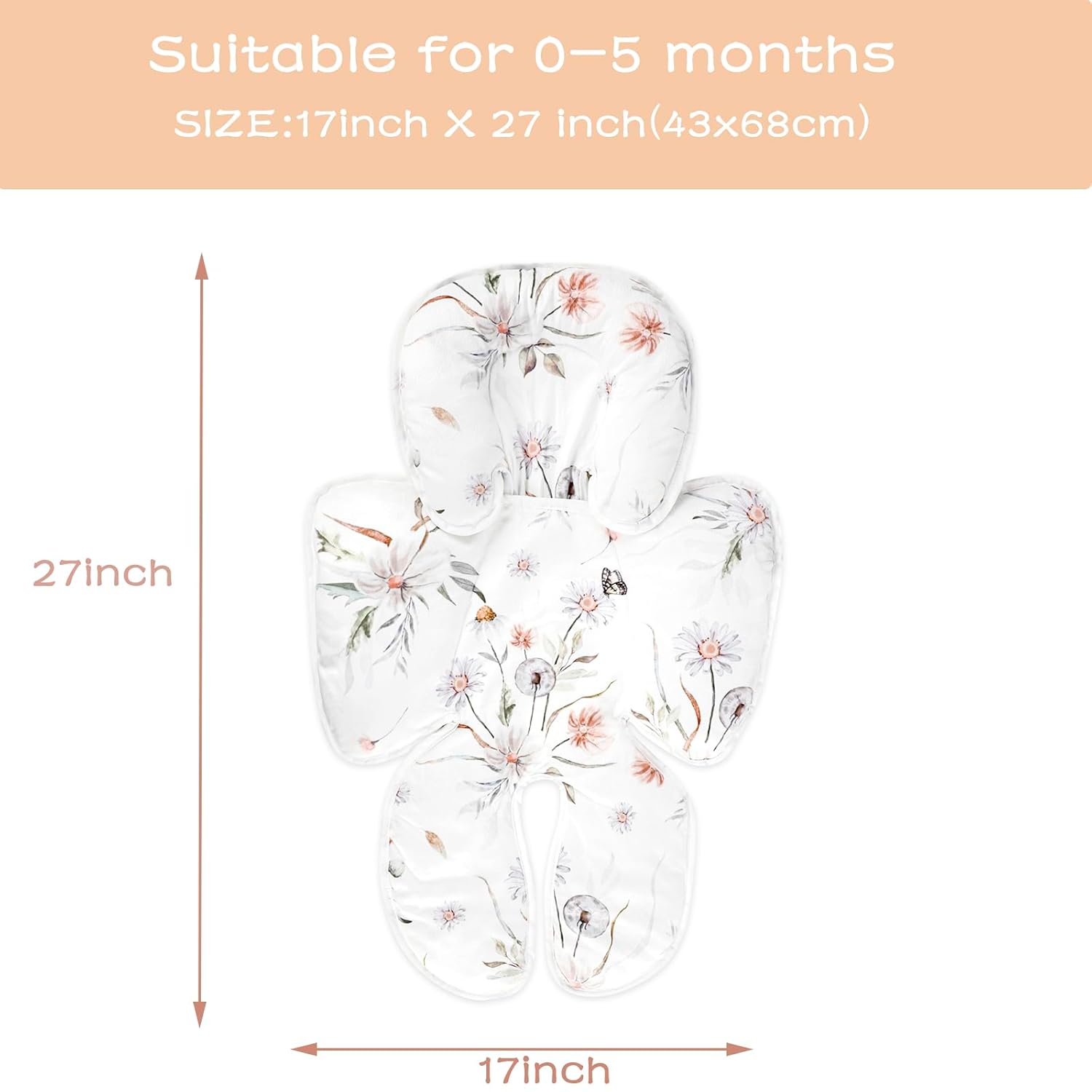 - Age Recommended: The newborn carseat insert cushion measures 27.5 x 17 inches and is recommended for premature babies and babies weighing up to 15 lbs