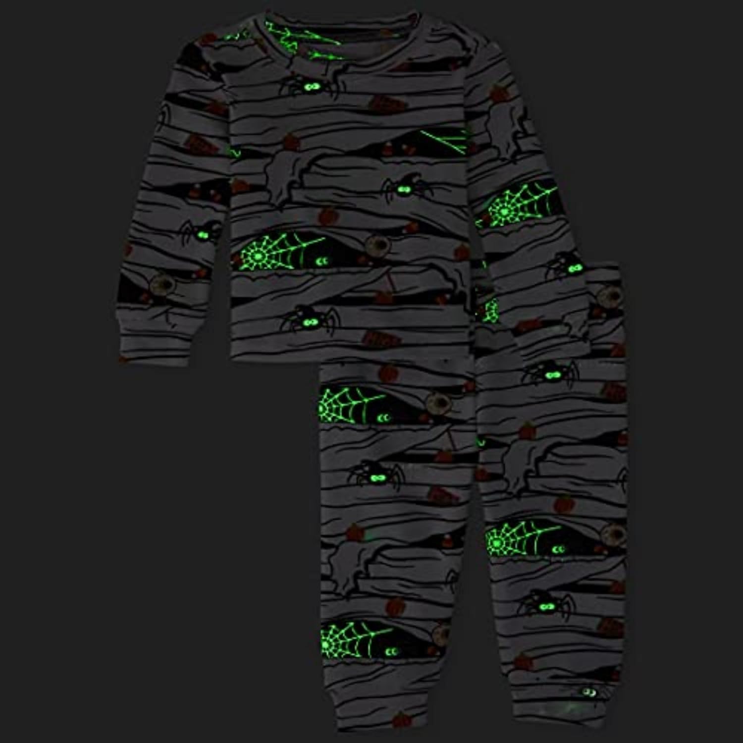 - PAJAMA TOP — Features long sleeves, rib-knit crew neck, banded sleeve cuffs and allover glow-in-the-dark mummy and candy print. For best glow effect, expose to light before wearing.