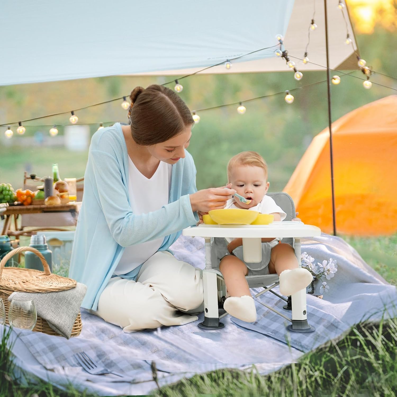 - ❤️[ Perfect for Any Chair ] BabyBond 2-in-1 baby chair with adjustable straps can attach to most dining chairs, but also as a baby floor seat. To provide the perfect space for baby to sit, eat, and play.