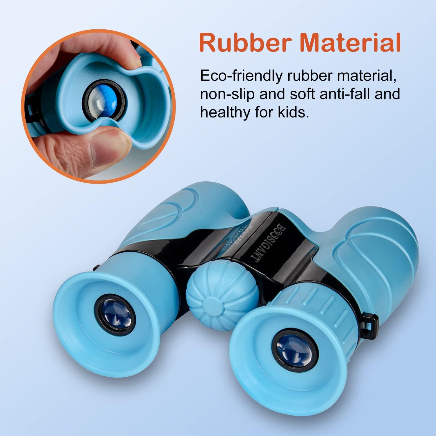 - Super Safety: Soft rubber surrounded eyepieces are included for eye protection so children don't hurt their eyes or face.Durable binoculars that can withstand drops and falls on floors due to rubber coating that absorbs shock.