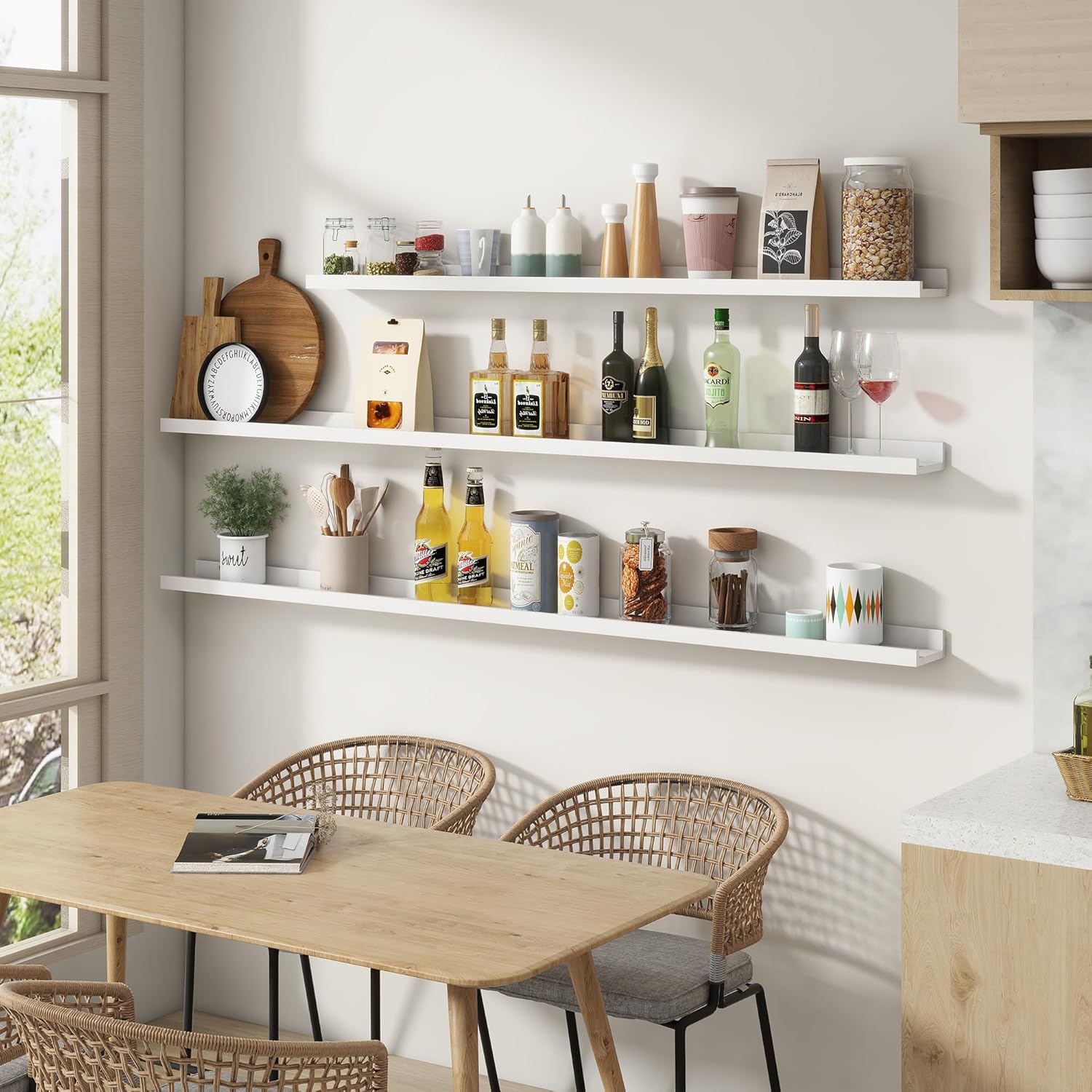 - Multi-scene & Functional: The wall-mounted shelves are designed for decoration and storage, utilizing and decorating any space in your home. Used as shelf decor to show your collection, books, or prize, the hanging shelves are perfect for displaying your photo frame, small plants, model, or audio in your living room, office, study. And can also use as over the toilet storage shelf in the bathroom to hold toiletries or used as a kitchen shelf to store condiments.