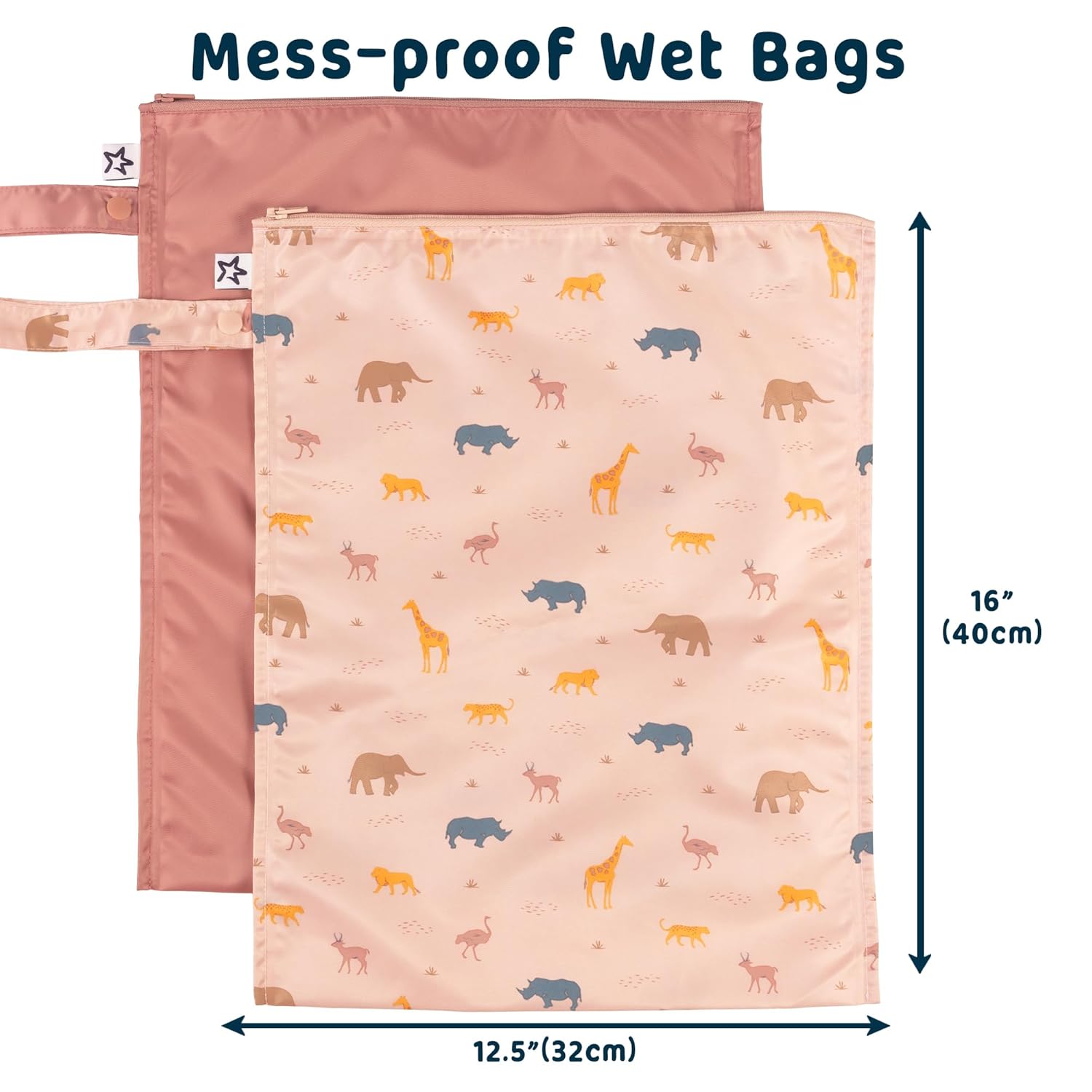 Tiny Twinkle Mess proof Waterproof Wet Dry Bag,2pk Reusable Wet Bags for Swimsuits&Baby Clothes,Leakproof Wet Bag,Waterproof Bag for Travel&Diaper bag,Wet Bags for Baby (Petite Safari)