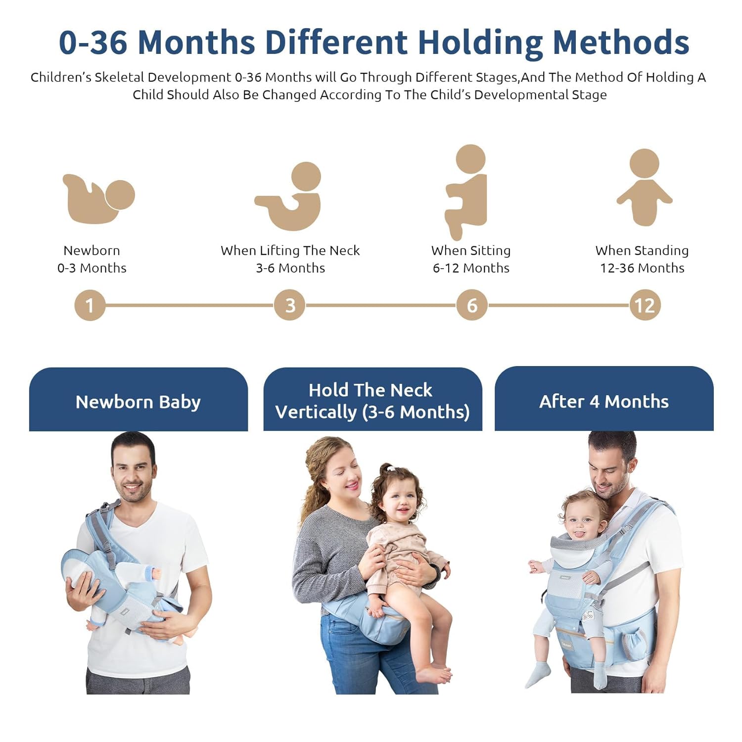 Baby Carrier with Hip Seat,Ergonomic M Position 6in1 Baby Carrier Newborn to Toddler,Head Support and Breathable Mesh Newborn Carrier,Adjustable Baby Holder Carrier for Dad&Mom-Blue