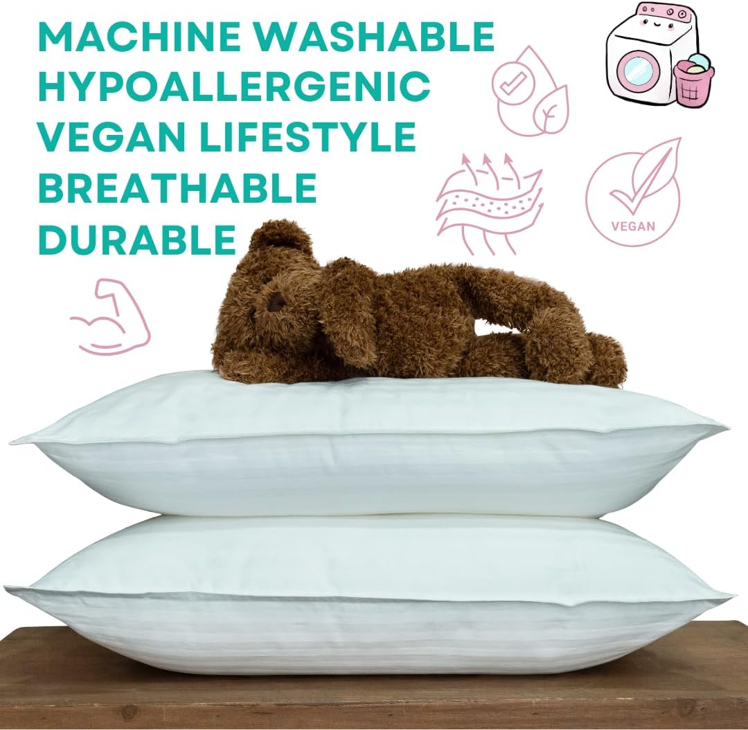 - DOWN ALTERNATIVE FILL: these pillows for children are filled with 100% Down Alternative. Durable, machine washable, lump free & hypoallergenic. It can safely be used without toddler pillowcase, pillow covers or travel pillow case cover.