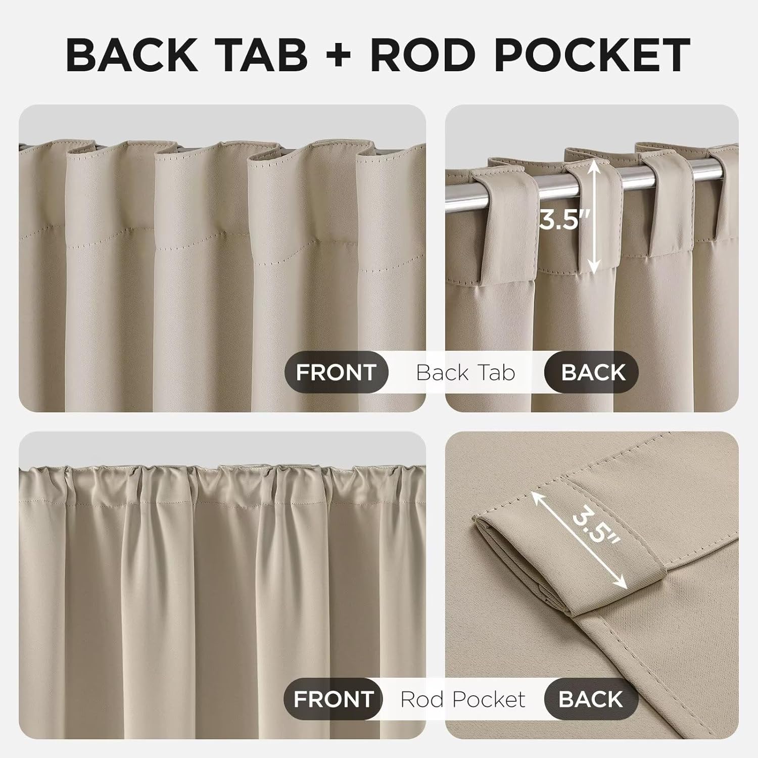 - 【Back Tab&Rod Pocket Design】Thread trimmed and wrinkle-free. Joydeco blackout curtain is available in both rod pocket and back tab, you can choose the convenient way to decorate your windows.