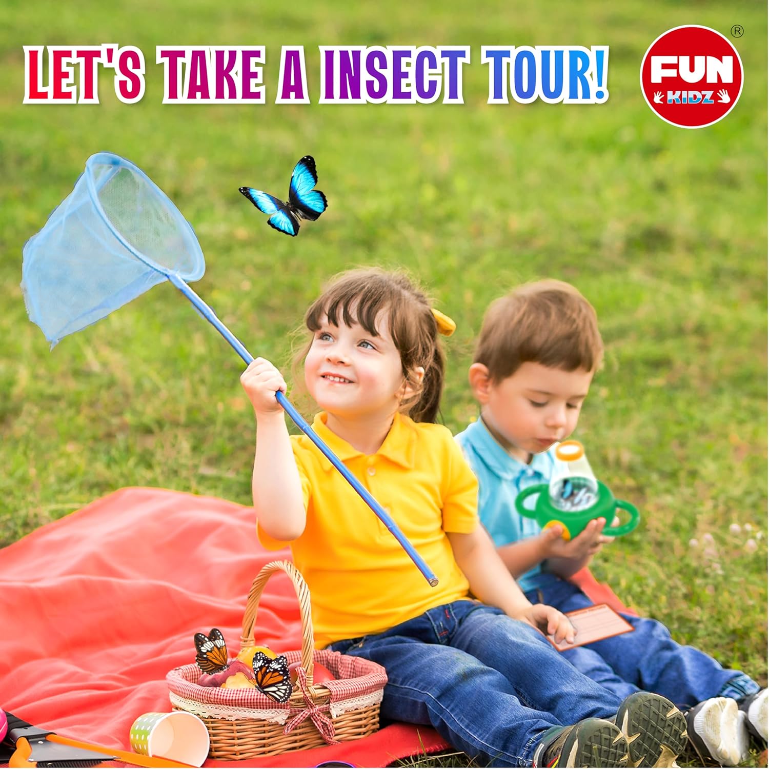 Science Kid Bug Catcher Kit, FunKidz Outdoor Activities Gift Butterfly Bug Habitat with Magnified Viewer Bug Catching Kit for Boys 3-12 Includes Net Catcher, Tweezers, Record Lists