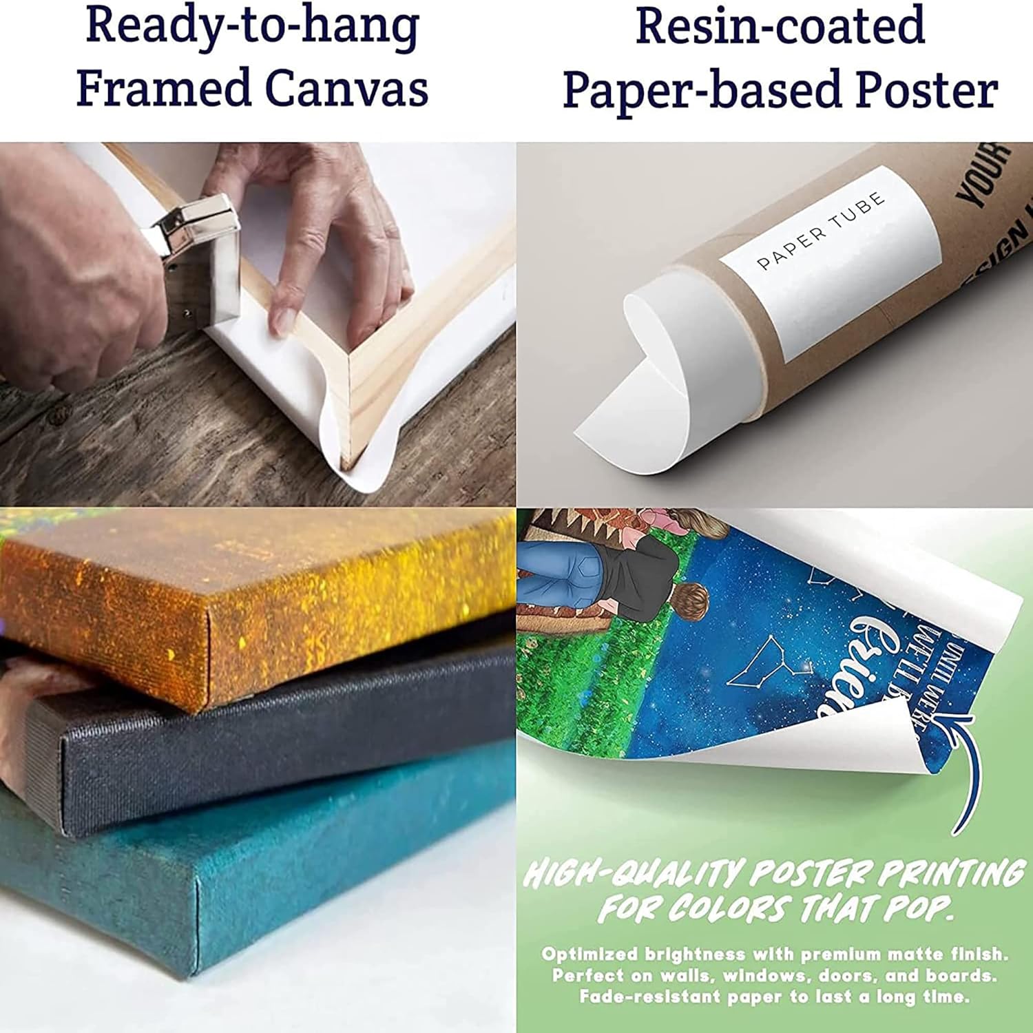 - CANVAS ( WITH FRAME): Abrasion-Resistant Surface That Easily Withstands The Print Production Process, Packaging, And Handling. Ready To Hang With Full Gallery Wrapping And Framing. Canvas Made Of 16 Mil, 310Gsm Material With A Fine Weave. Comprised Of 35% Cotton And 65% Polyester For Added Durability And A Satin Finish.