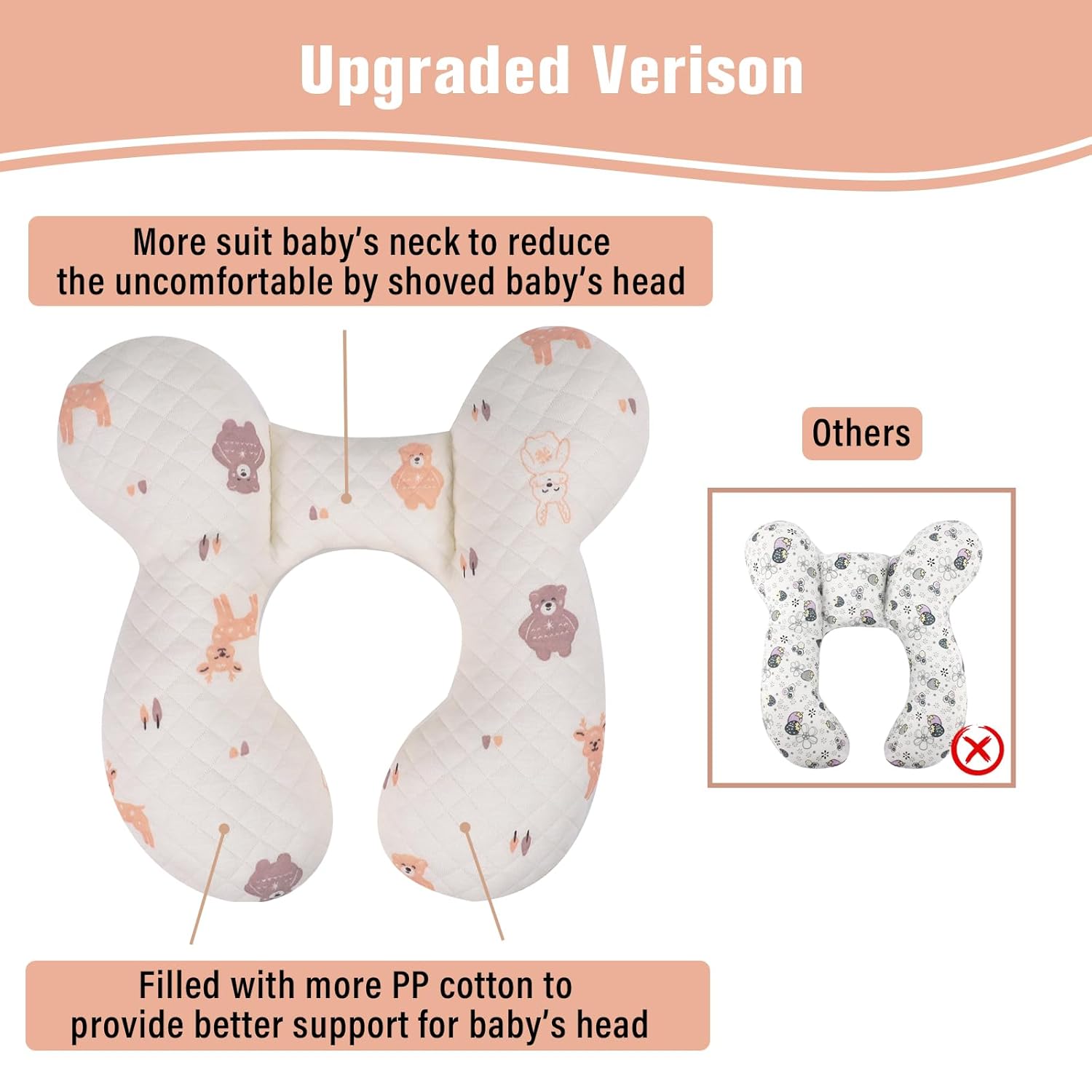 - U-shape Design, Upgared Version: Baby neck support pillow u-shape design provides the neck and head support for babies in the growth stage of 0-3 years old, both sides are filled with more pp material to provide better support for baby's head, and the center of the baby head support for car seat has less filling, The center of the pillow has been narrowed,which will not shove baby’s head
