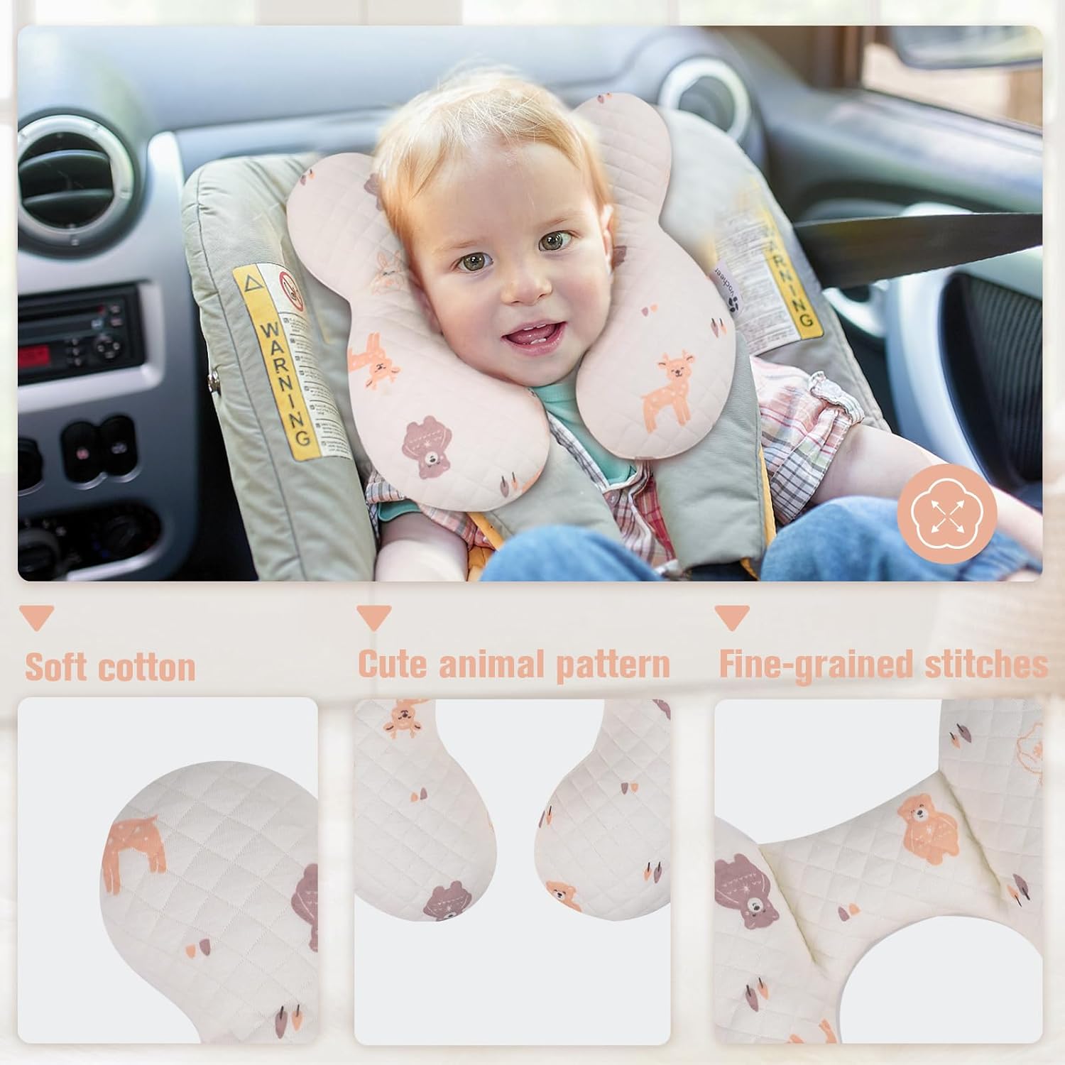 - Breathable and Safe: Baby neck pillows for car seat is made of soft cotton, very breathable and sweat-absorbent, baby head support for car seat will not be stuffy and can be used in summer, which is soft and gentle to baby's skin, baby will not be allergic, very suitable for baby's skin