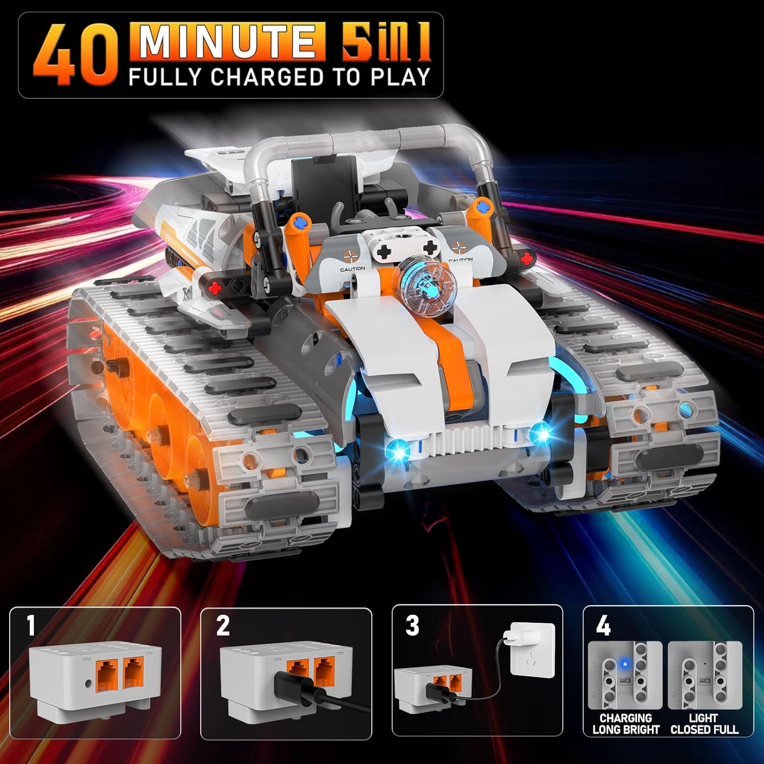 5in1 STEM Building Toys for Kids 6-14, Remote & APP Controlled Mech Robots/Heavy Tanks/Tracked Racer STEM Building Kit for Kid Science Learning, 552 Pcs DIY Building Blocks Set Gifts for Boys & Girls