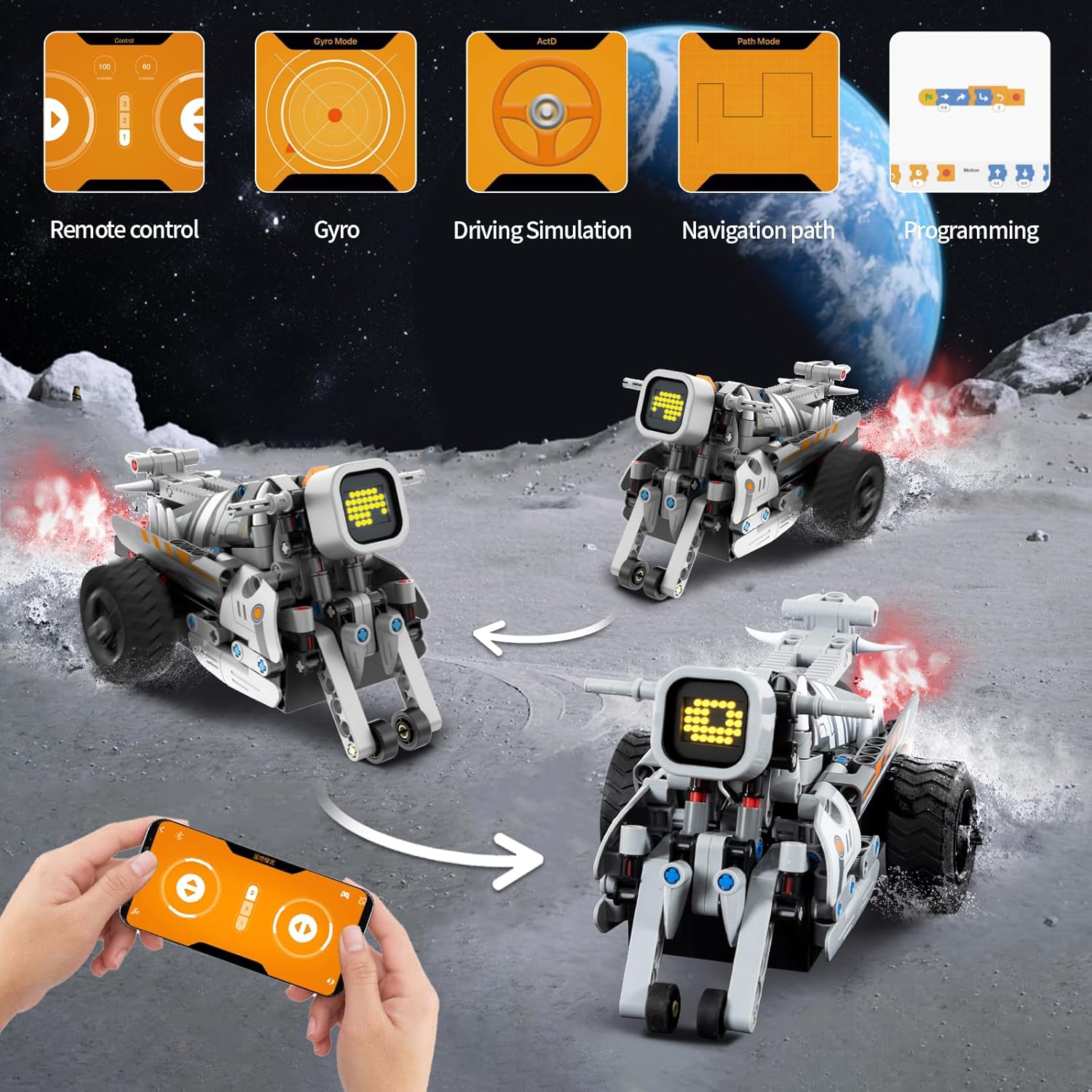 - ✅【Multiple RC for More Fun】Whether indoors or outdoors, smooth floors or rough terrain, this robot building kit makes stunt driving easy. Kids can make their robot/dinosaur do the actions of their choice via the app or using the remote control. The coding app is completely based on colorful icons and is very simple and intuitive, so even complete coding beginners can easily get started. There are many ways to play in the APP, such as gravity mode, path mode, STEM programming mode and drive mode.