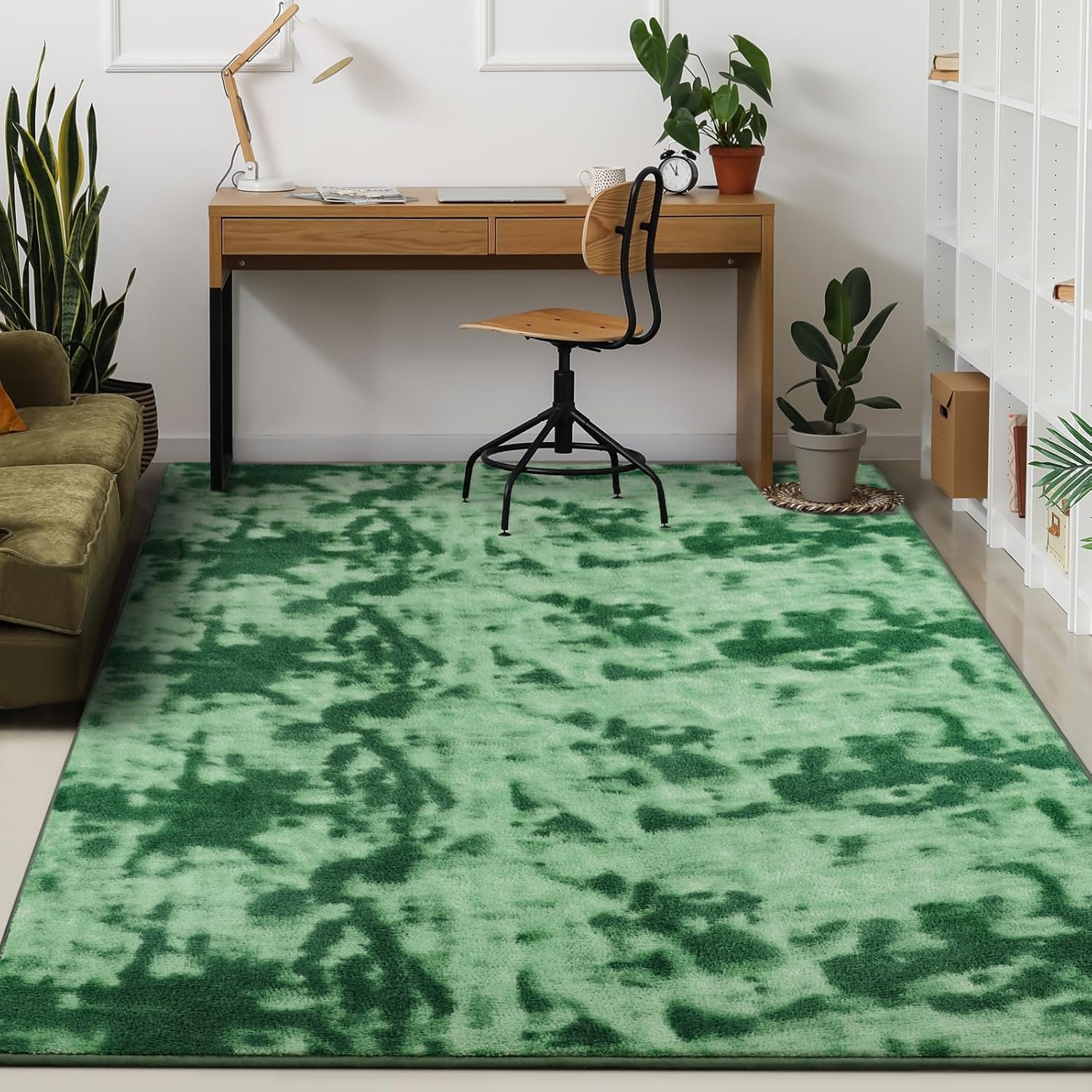 - [Modern Minimalist Home Decor]Tie-Dyed green floor rug fits any room decoration. Minimalist style, abstract tie-dye colors and modern funky appearance bring you a cozy and luxury home experience, which is widely applicable to living room, bedroom, dorm, dinning room, office and nursery room