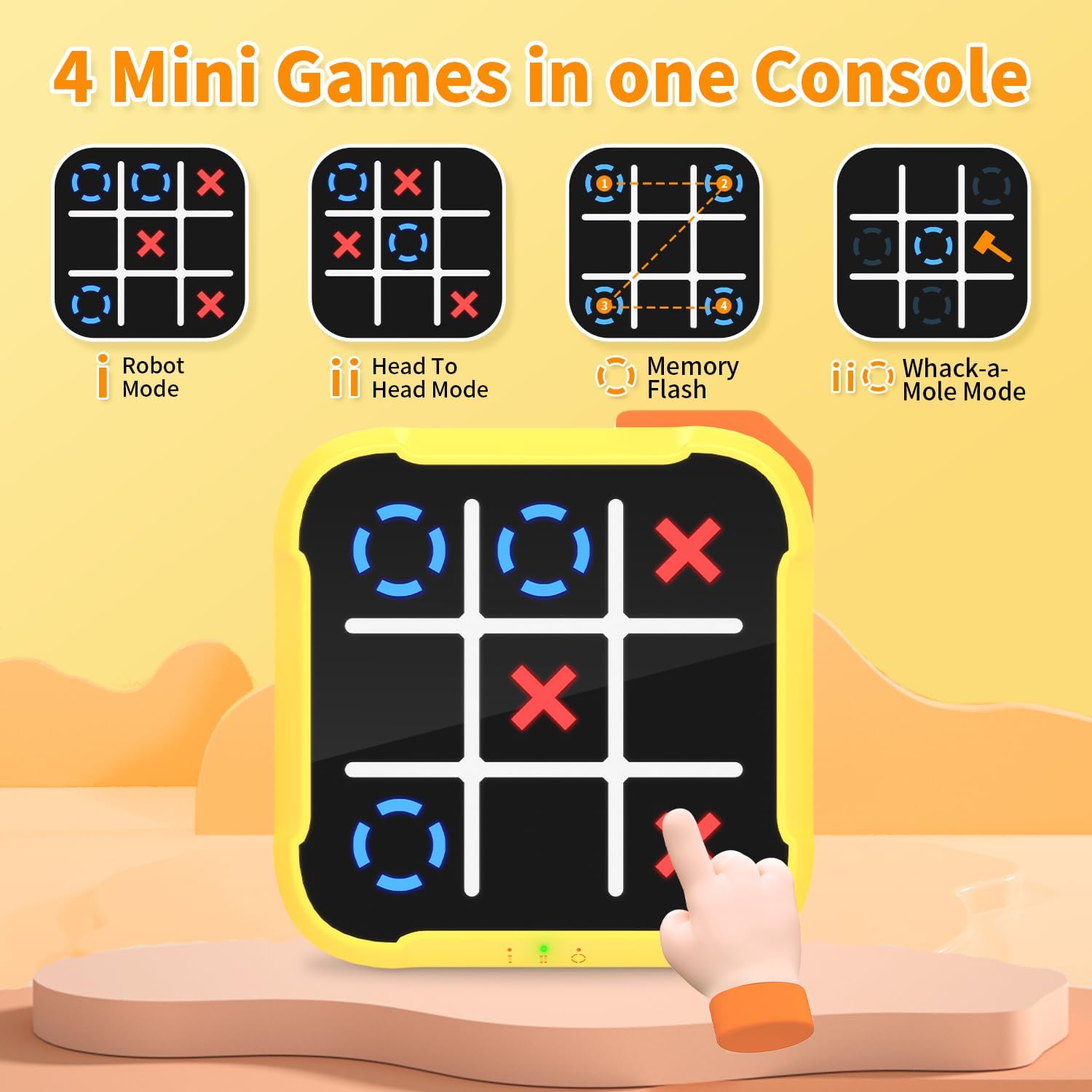 Tic Tac Toe Bolt Game 4-in-1 Handheld Portable Electronic Toy, Educational Board Games Puzzle for Kids and Adults, Perfect for Travel, Road Trips, and Birthday Gifts - Fun Memory Game