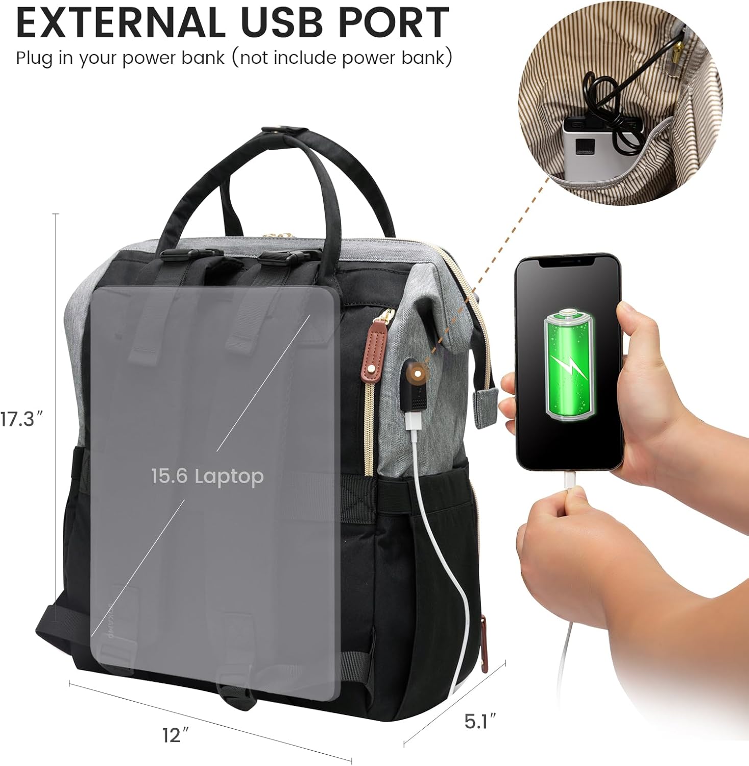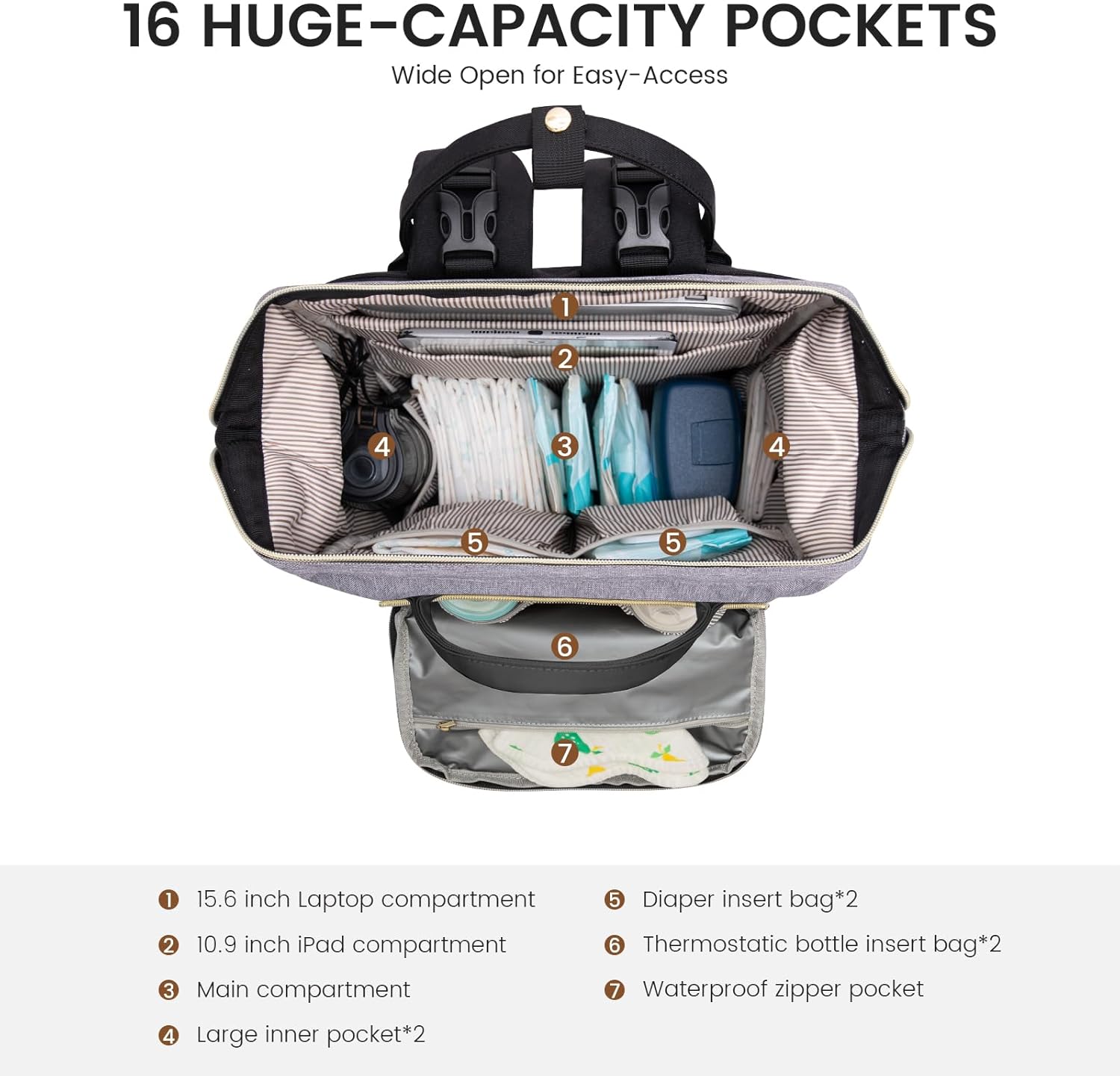 - 【Ultimate Mommy Bag】: Measuring 17.3'' x 12'' x 6.1'' with a 27L capacity, our bag boasts 16 thoughtfully designed pockets to offer ample storage for every outing with your baby.
