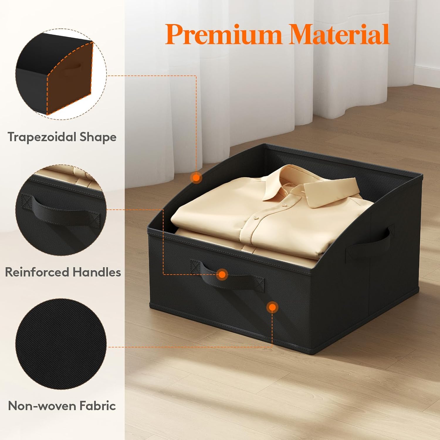 Lifewit Storage Baskets for Shelves, 6 Packs Non-woven Fabric Trapezoid Closet Organizer Bins with Handles, Foldable Clothing Containers Box for Clothes, Toy, Towel, Book, DVD, Hats, Small-Black