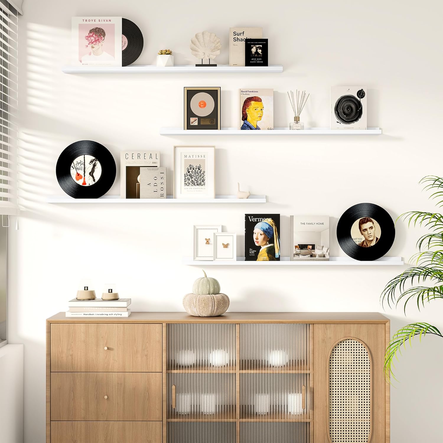 - NO ASSEMBLY REQUIRED: Fun Memories fully assembled long floating shelf set of 4 comes with the pre-drilled holes and necessary hardware including a mini level to make installation a breeze. The floating design creates a seamless, streamlined look, adding a touch of modern sophistication to your interior