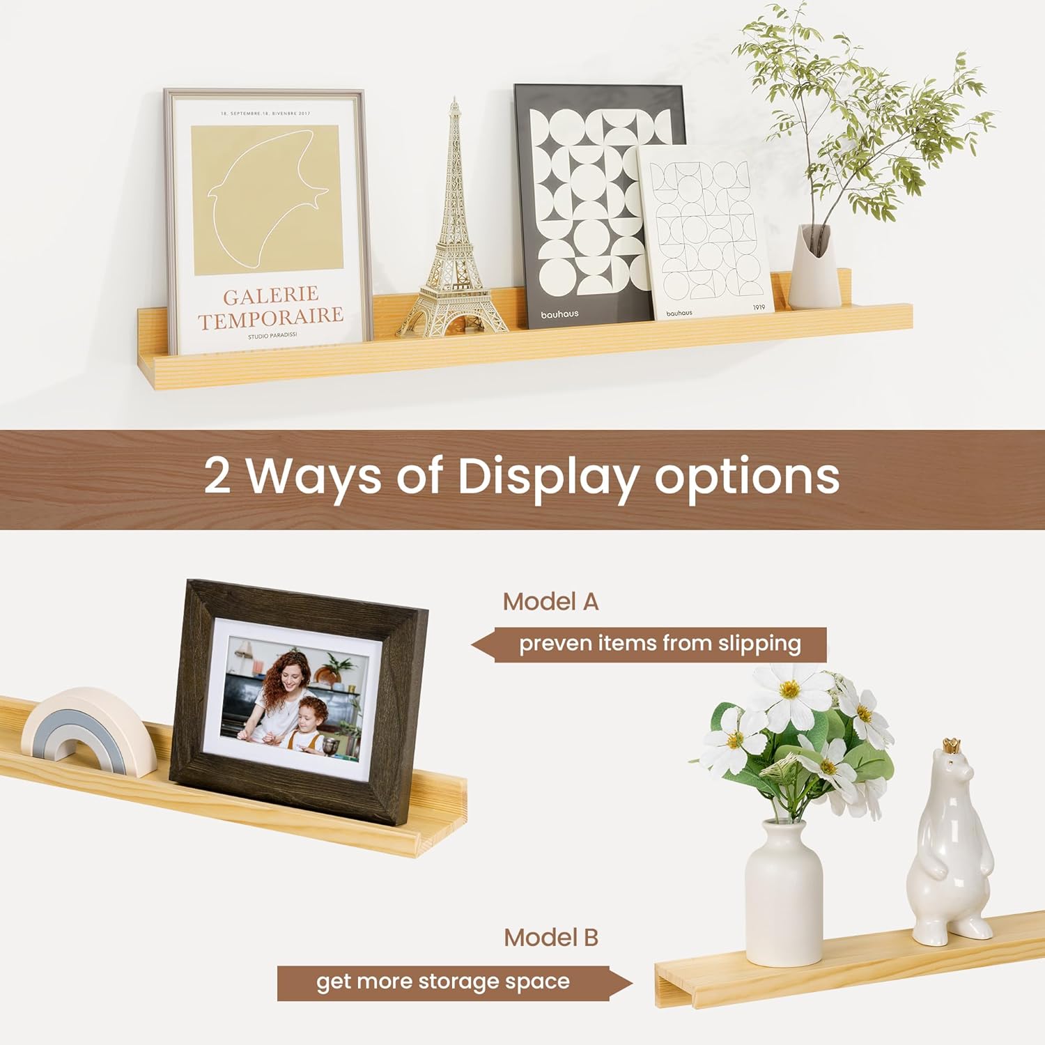 - Chic Minimalist Design: Solid pine wood picture ledge shelves available in multiple colors and sizes, these picture shelves complement any decor, from modern to farmhouse. Use them alone or in a gallery-style arrangement to create a stylish focal point