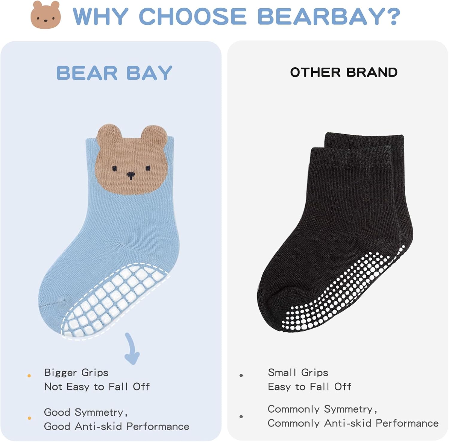 - Comfortable: Premium breathable cotton blend gives Bearbay socks excellent air permeability and ductility as well as warmth. Hand linked Seamless smooth toe and reinforced “C” heel as well as no-pinch cuff offering all day comfort, breathability and softness to baby’s foot