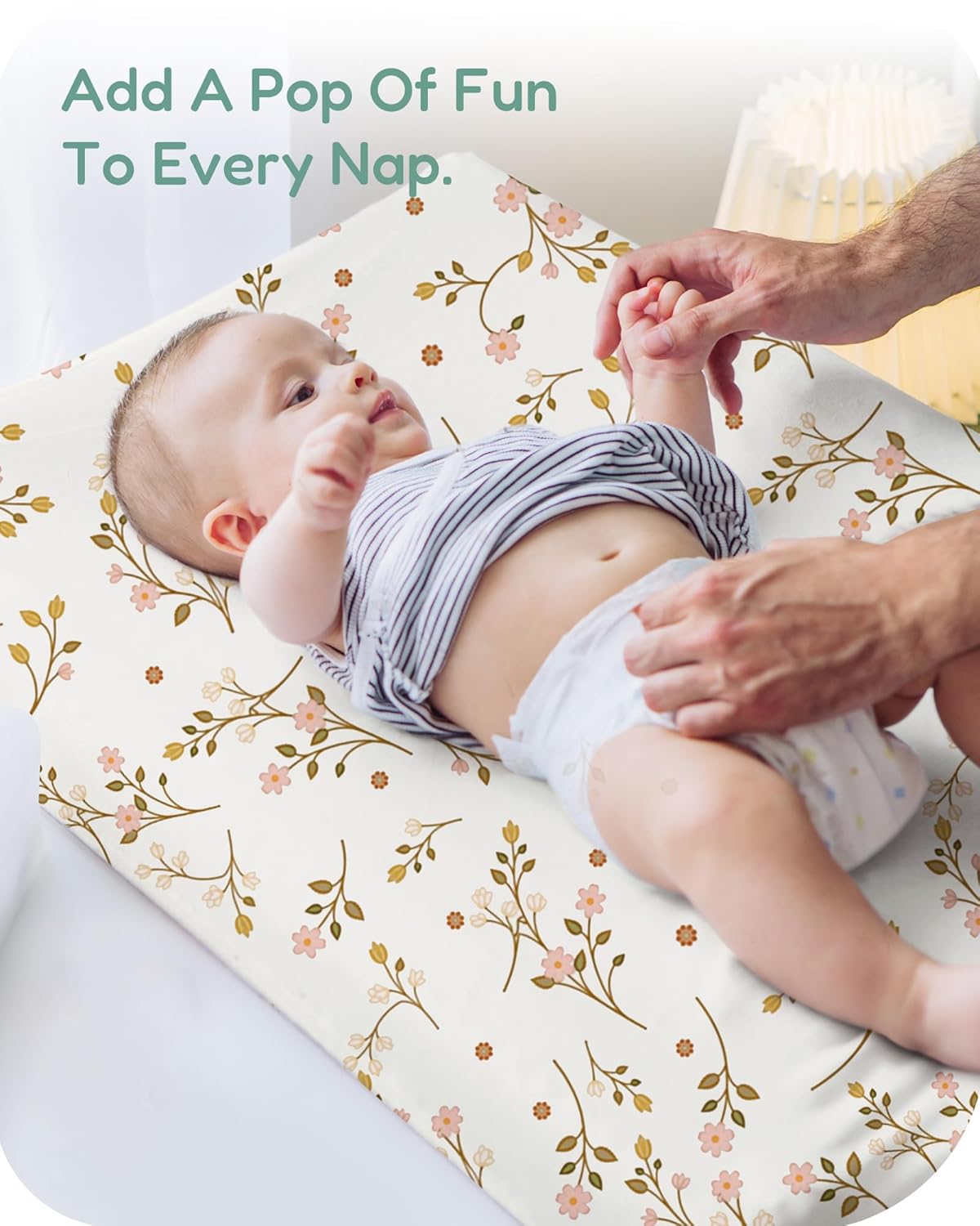 - Secure 360-Degree Elastic Fit: Designed with fully encased 360-degree elastic, this baby changing pad cover fits snugly around your changing pad, preventing slipping or shifting during diaper changes, providing a stable and secure surface for your baby.