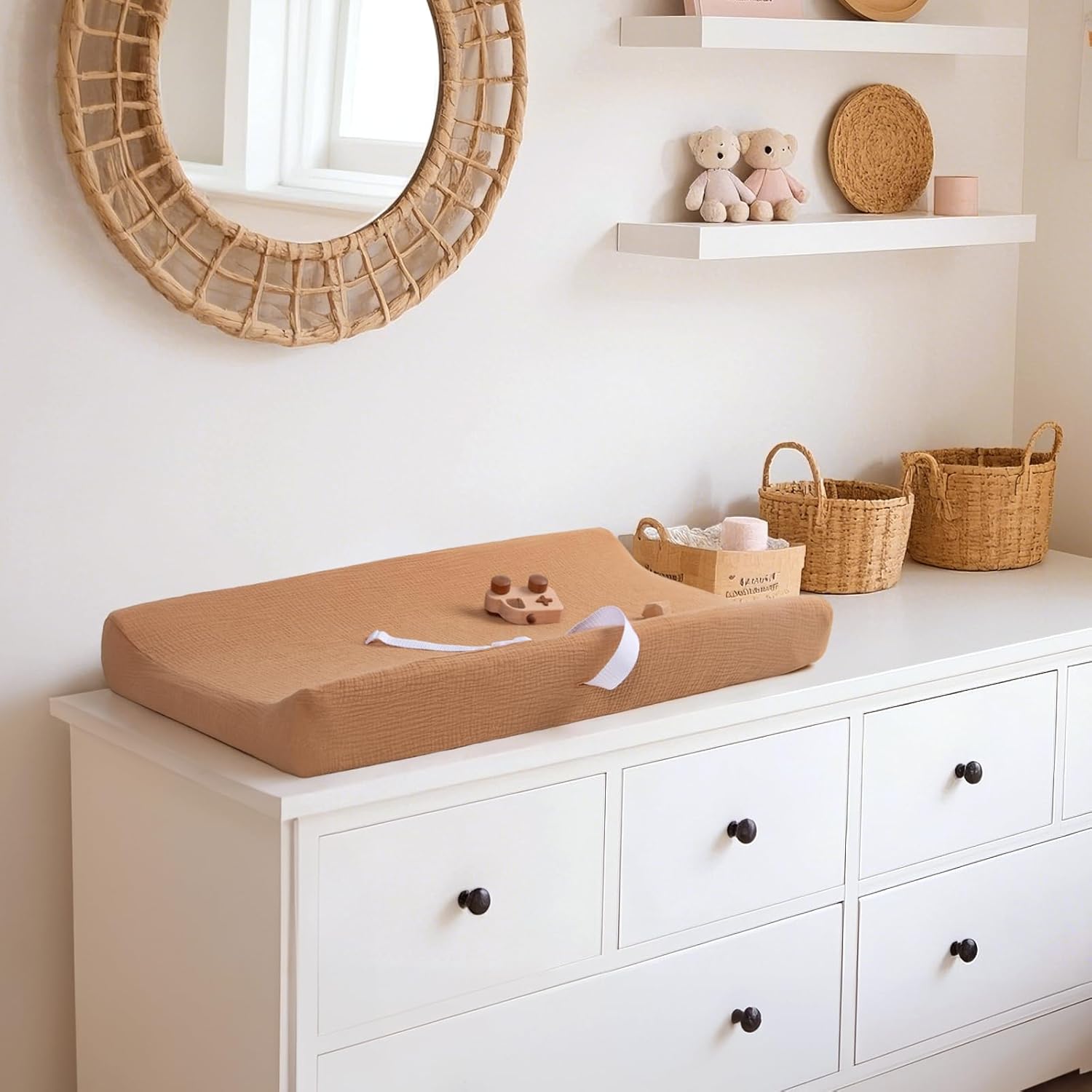 - FITS MOST CHANGING PADS: Muslin changing pad covers measures 17" x 33", 7" deep pockets fit most standard size changing pad. Don't worry if this changing pad covers will fit your changing pad.