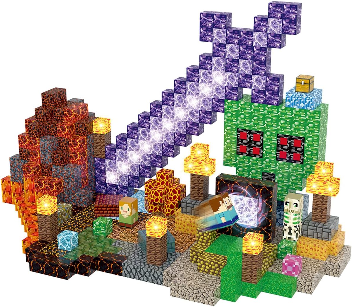 Magnetic Blocks Building Toys Set, Magnetic Building Blocks STEM Construction Toys, 3D Sword Light Up Magnet Cubes Montessori Sensory Stacking Toy for Toddlers Age 3 4 5 6 7 8
