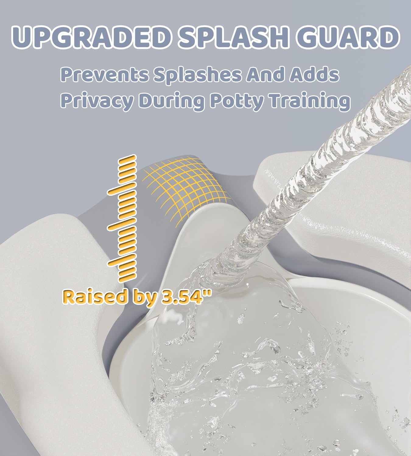 - 【Splash Guard & Urinal Design for Boys】Includes an extended splash guard with a 2.8-inch deep arc recess to prevent spills, ideal for boys during potty training. The urinal-style front makes it easier to keep things tidy and mess-free, promoting better hygiene and easier cleanup.