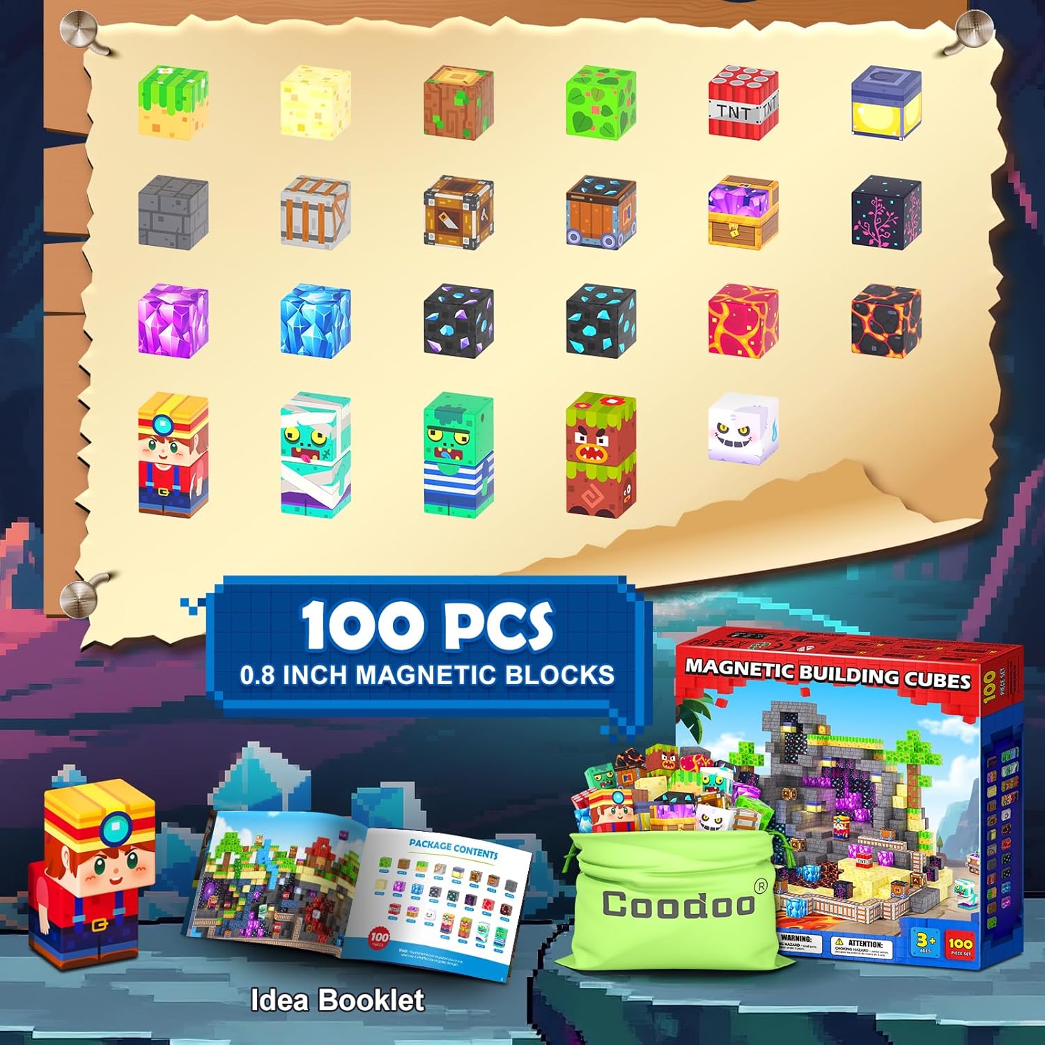 - Join the Rainforest Mine Adventure: Legend has it that the rainforest holds countless precious gems, but it's also overrun with zombies! Yet, brave miners still venture across this lava-filled land in search of treasure. Join the treasure hunt now!Let this 100PCS magnetic blocks lead you into a fantasy world full of challenges and surprises. Be the next gem hunter!
