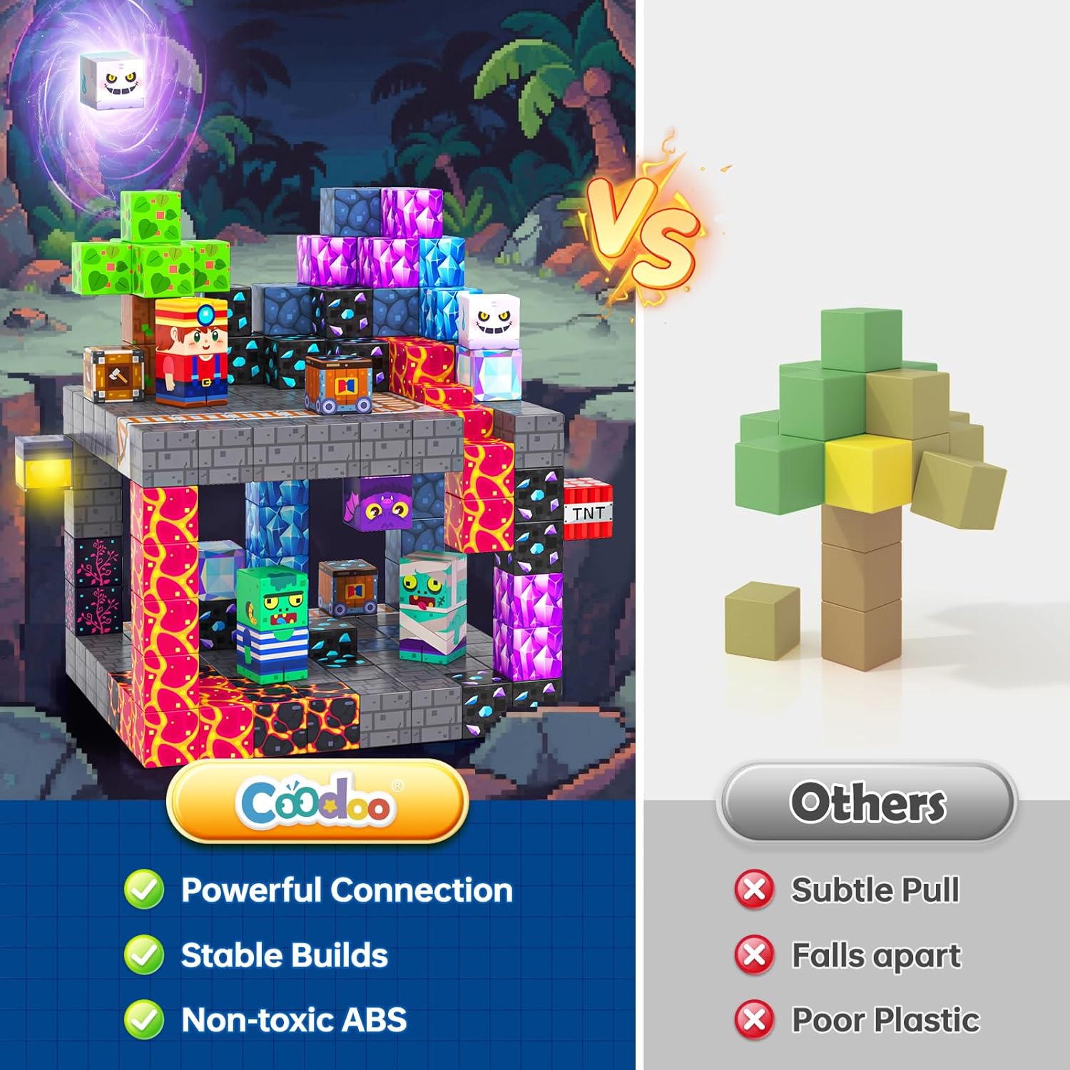 - Build Steadily: Crafted with powerful force magnet and premium ABS plastic, each magnetic building block is built to withstand repeated building. The strong yet balanced magnetic force allows children to connect easily without falling apart. The sturdy material protects children's safety, and the powerful magnetism unleashes their imagination. From now on, building is free from restrictions, and creativity never collapses.